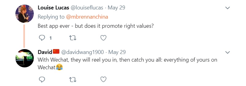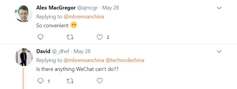 “It’s also very typical that payments can also be handled directly through WeChat, although without going through the process, it’s unclear if this is an option right now,” Brennan said.