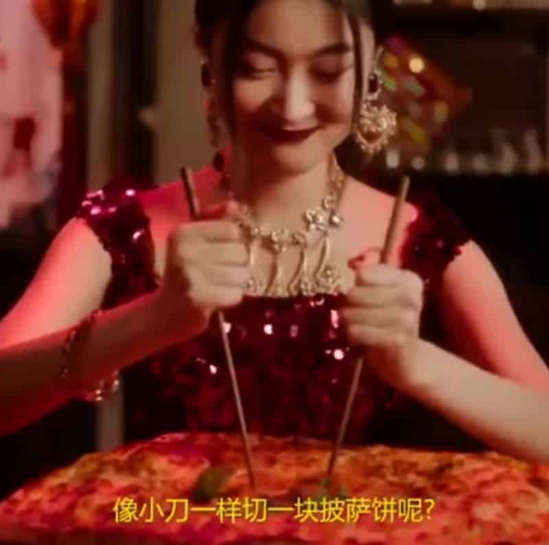 Zuo Ye, the model who was depicted eating pizza, pasta and a cannoli with chopsticks, said she questioned the director but was not given any details prior to filming.