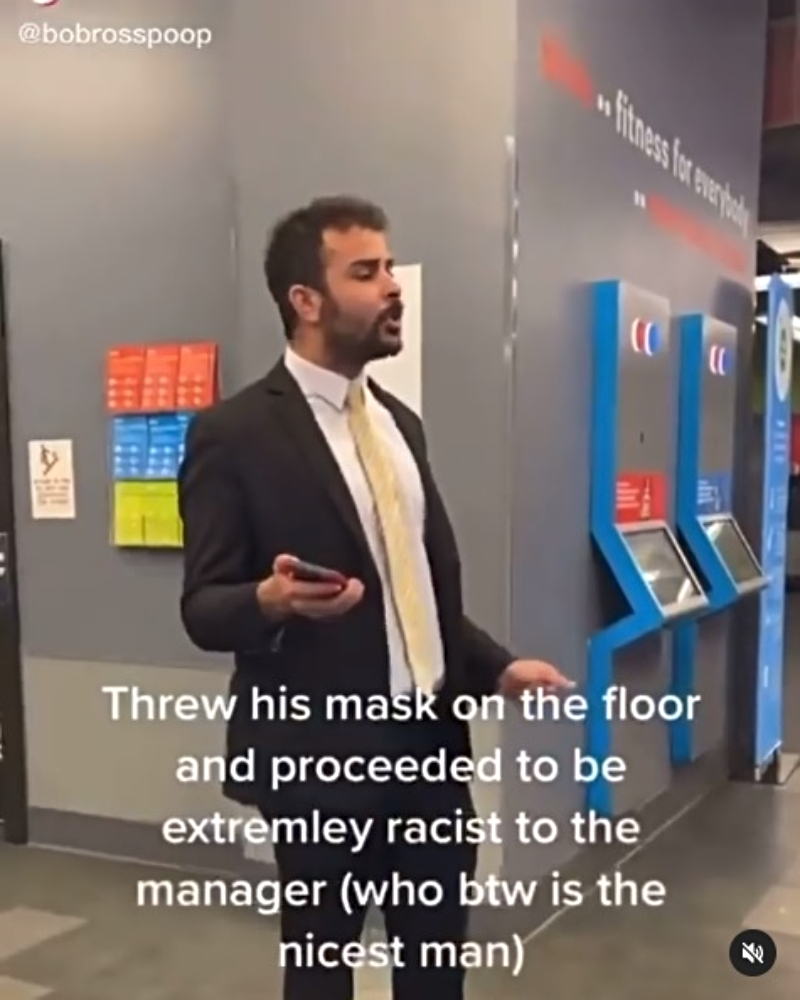 “He threw his mask on the floor and proceeded to be extremely racist to the manager, who is by the way the nicest man,” wrote TikTok user @bobrosspoop, who filmed the incident.