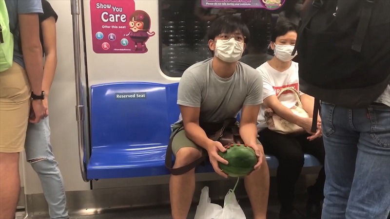 The woman then realized the watermelon was nothing more than a DIY game console. After that, she asked Tan to show his work to her colleagues in the train station office.