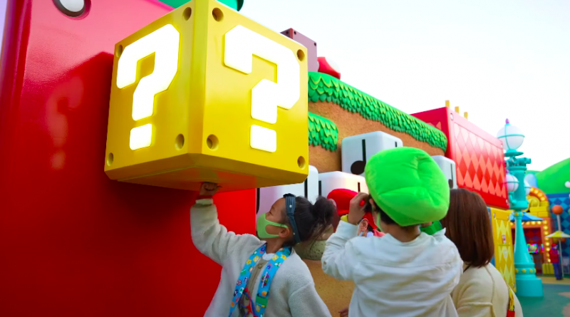 Visitors are transported into the park through one of Mario’s green warp pipes, where they are greeted by life-size replicas of popular Nintendo games.
