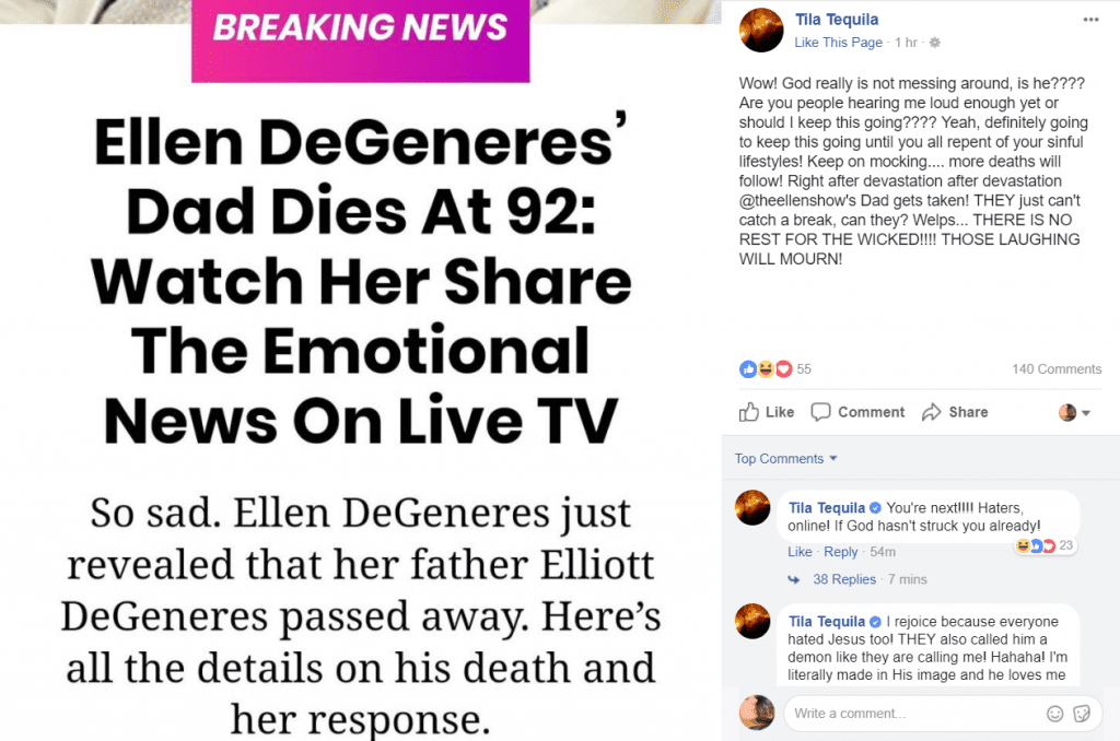 She has also switched accounts, proclaiming that she would no longer use her Tila Tequila FaceBook page and instead use one previously designated for her artwork, Tornado Thien.